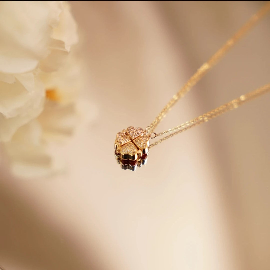 Magnetic Attraction: Each heart-shaped piece of this necklace is magnetically charged, allowing them to connect and form a beautiful flower design. This innovative magnetic design symbolizes the coming together of love, making it a perfect gift for someone special.