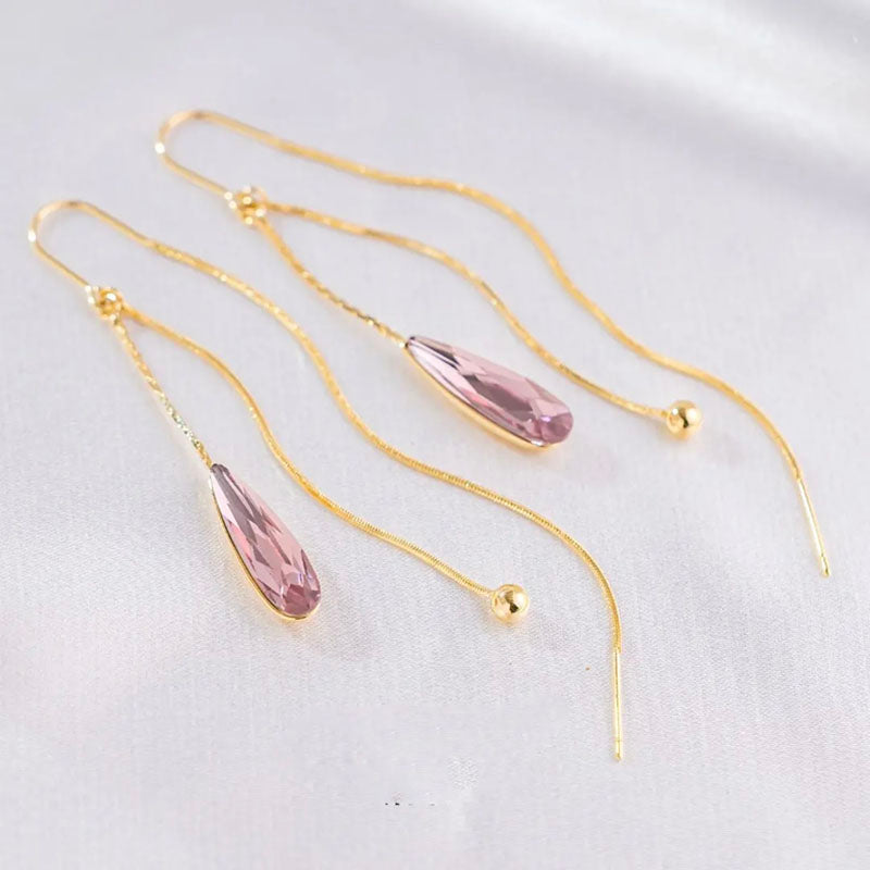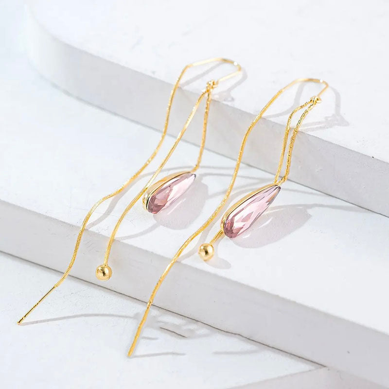 Discover elegance and sophistication with our Crystal Drop Earrings, meticulously crafted from premium 925 Sterling Silver and adorned with an 18K Gold plating for an exquisite finish.