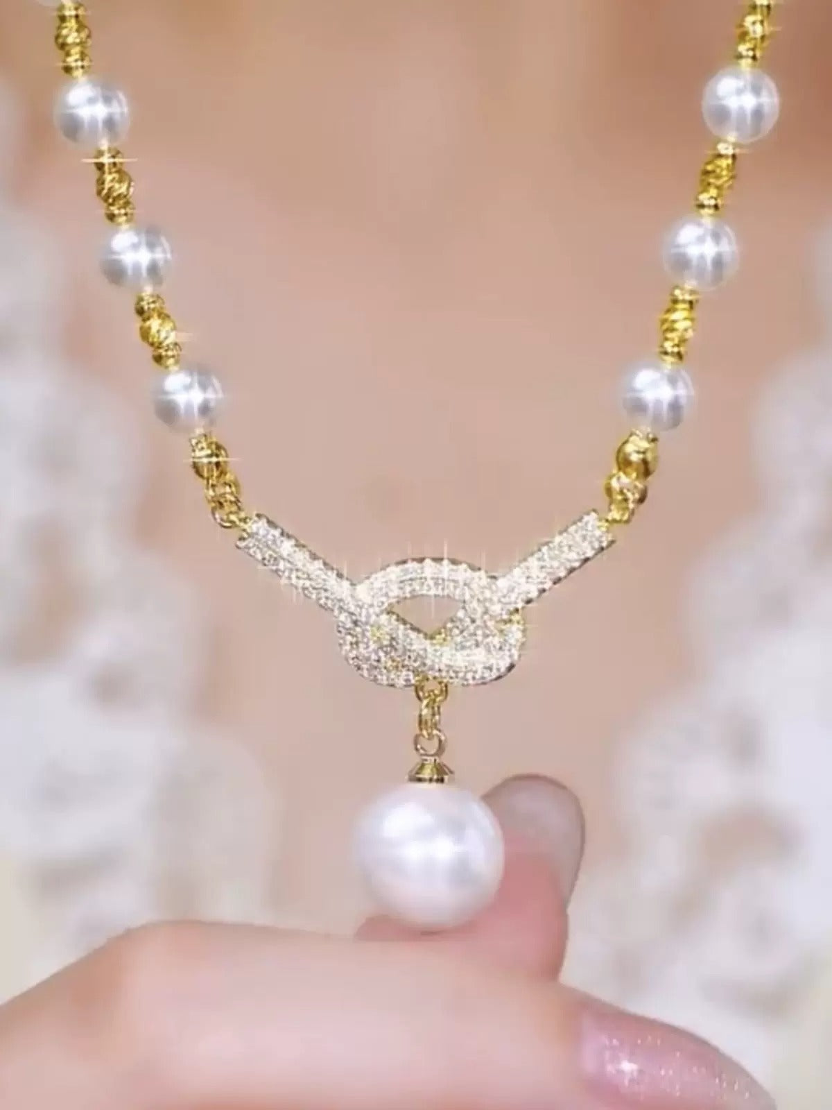 Luxurious Design: The unique twisted rope design encircles an elegant imitation water drop knot.