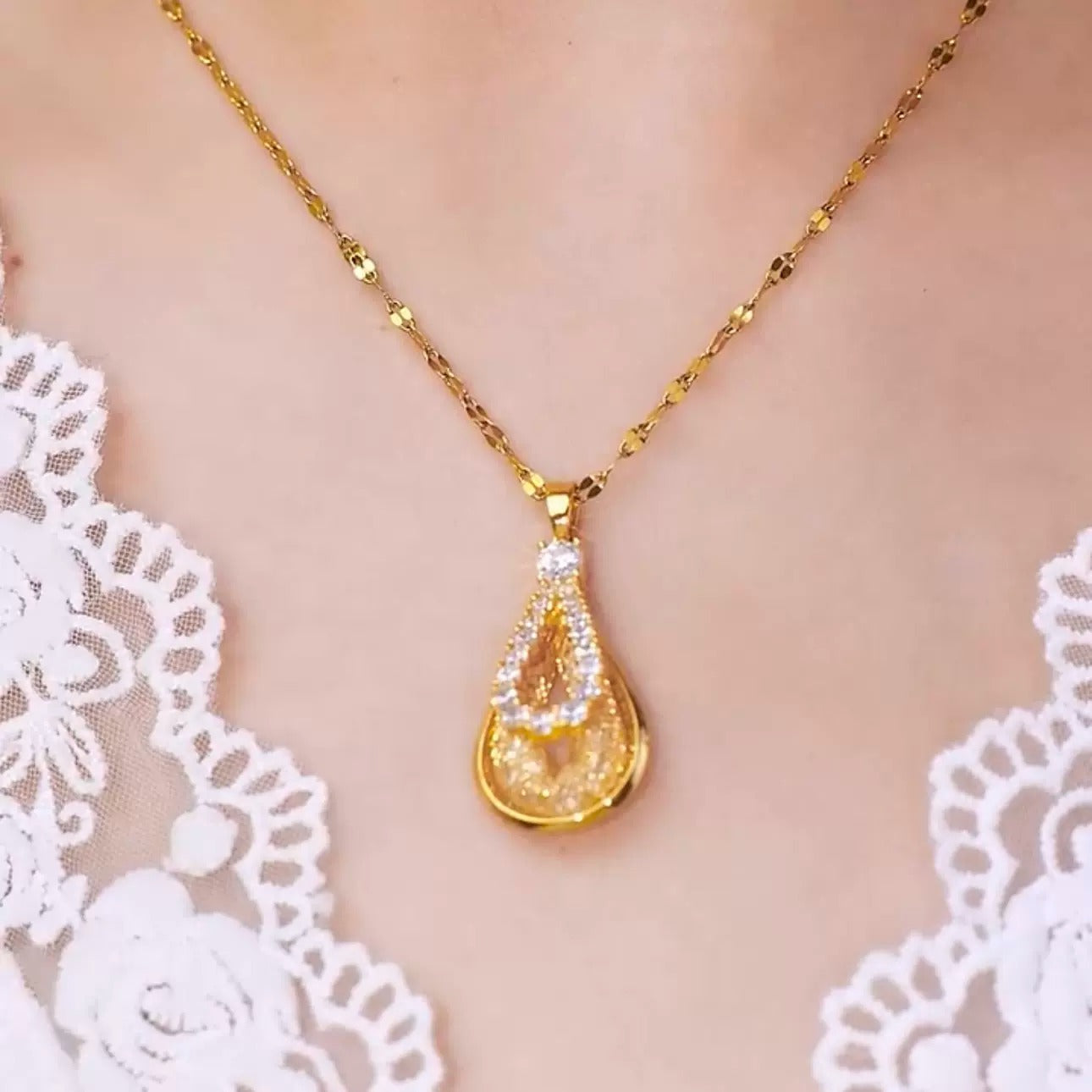 High-end zirconia necklace(24k gold plated)