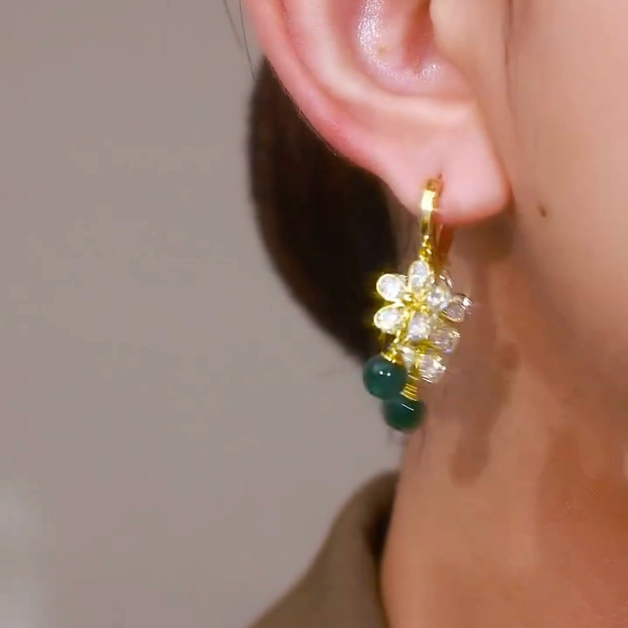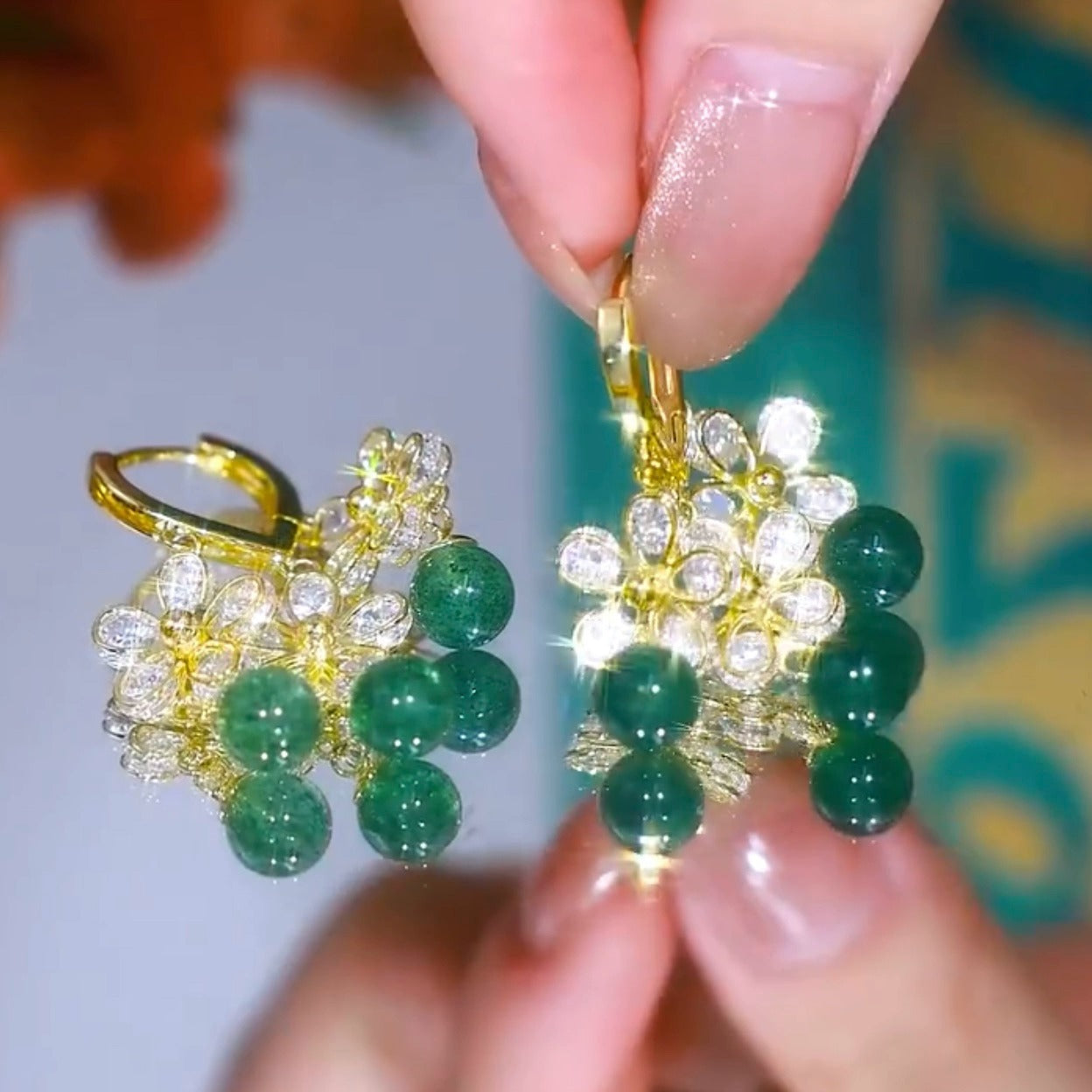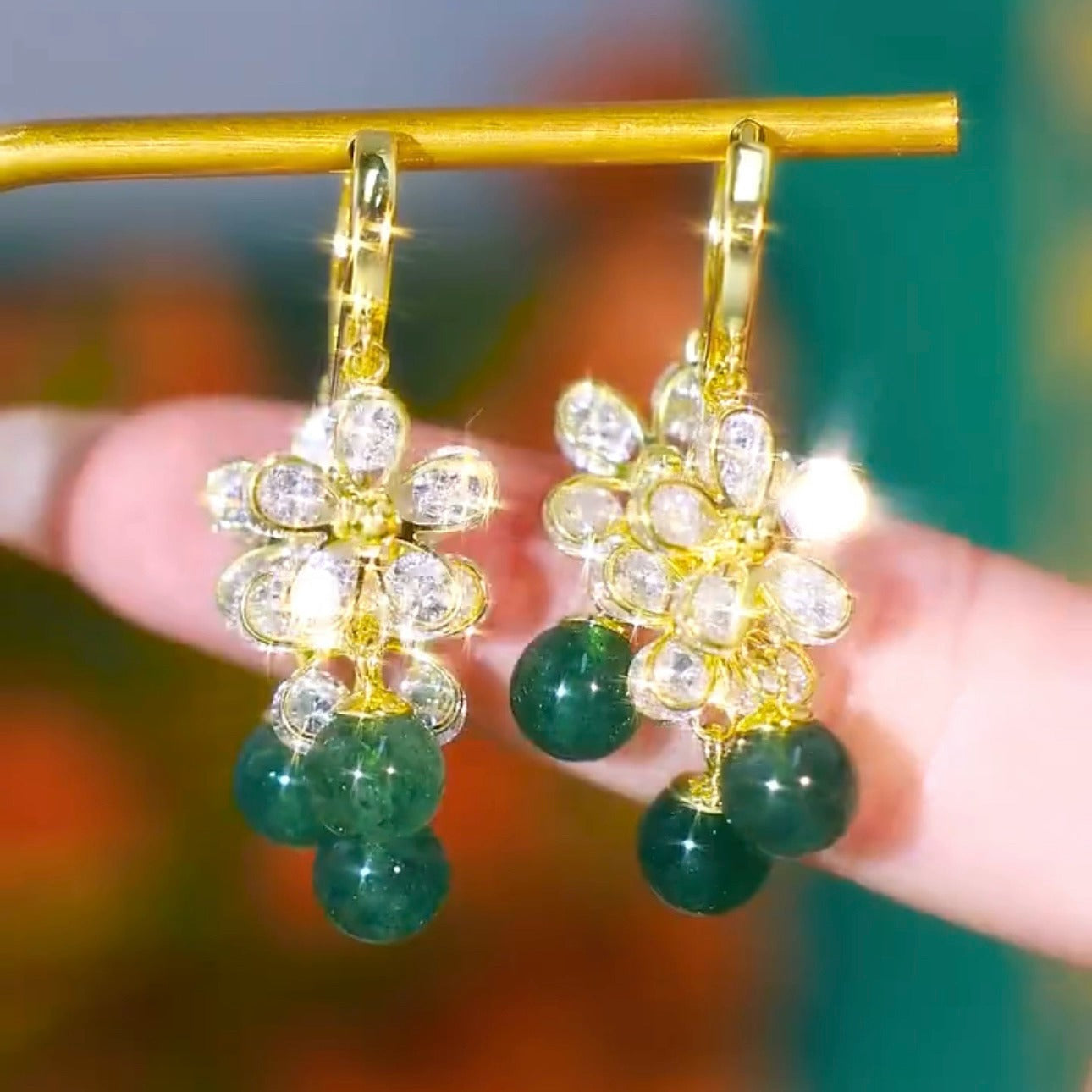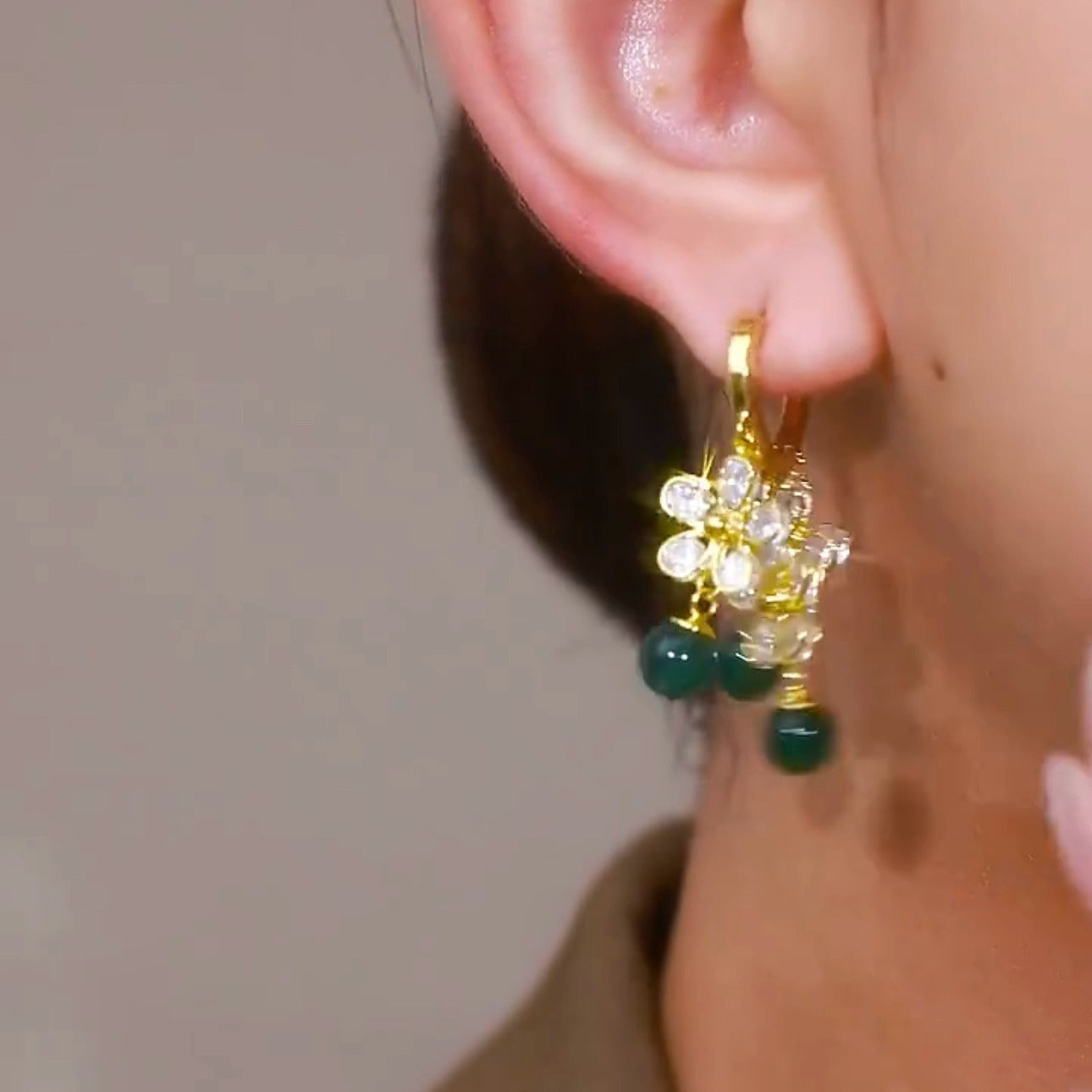 Discover elegance and sophistication with our High-grade green zircon flower earrings(18k gold plated), meticulously crafted from premium 925 Sterling Silver and adorned with an 18K Gold plating for an exquisite finish.