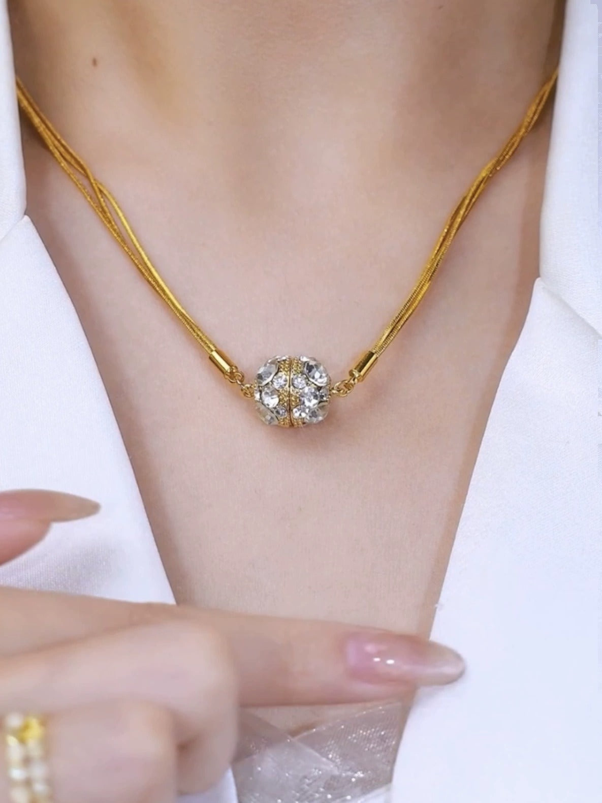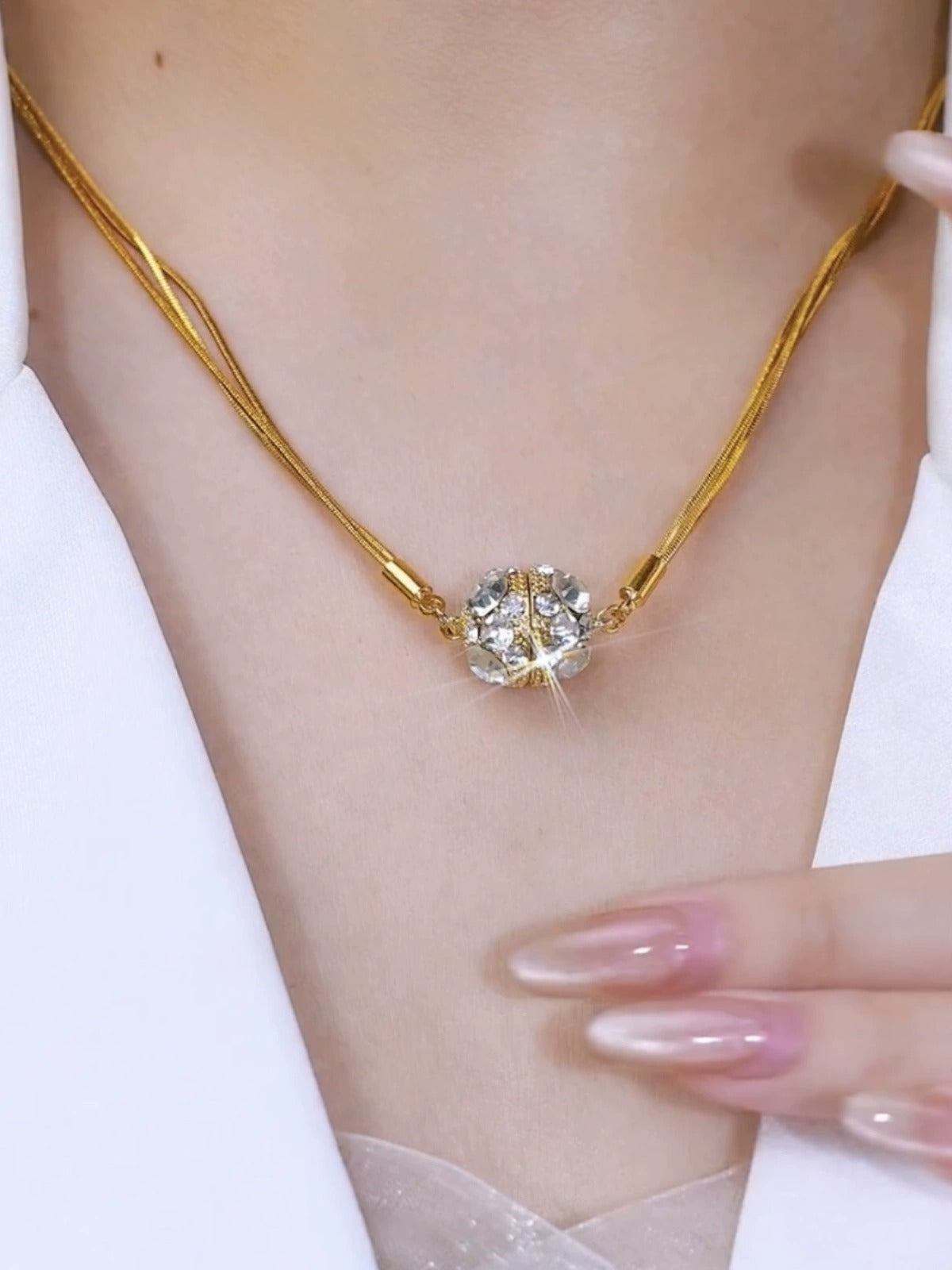 High-grade magnetic diamond-studded multi-layer necklace(Gold plated)